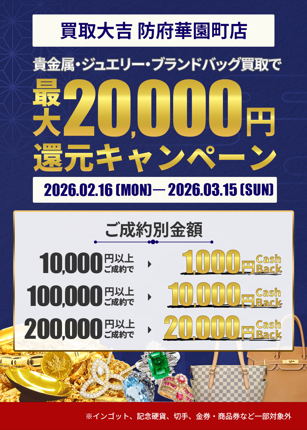 ※インゴット、記念硬貨、切手、金券・商品券など一部対象外の品目がございます。